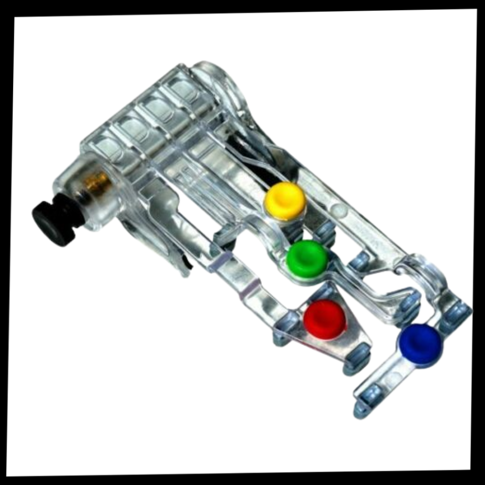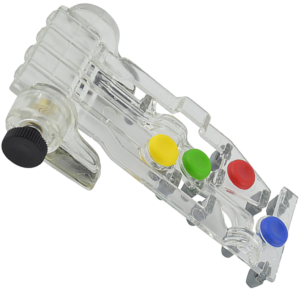 This case, designed with four different coloured keys, is easily attached to the top of your guitar neck. Tighten the tool so that it is securely fastened to the guitar and then start playing.