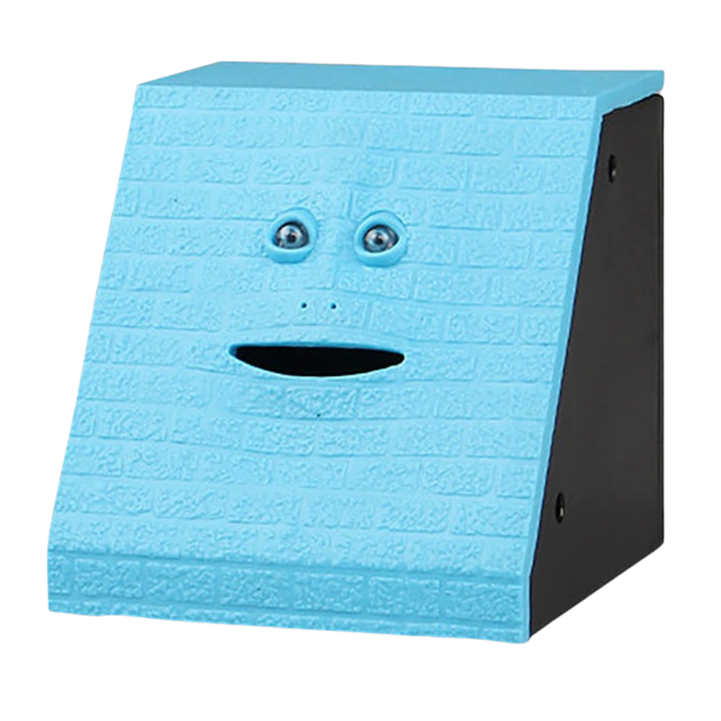 The face of the Money Eating Piggy Bank has is made from soft and elastic elastomer material. The surface imprint is like bricks and the piggy bank has 4 non-slip feet on the bottom. The movements of the face are so realistic that it will impress and mesmerise almost anyone. On top of that, the design is smooth and comfortable to touch.
